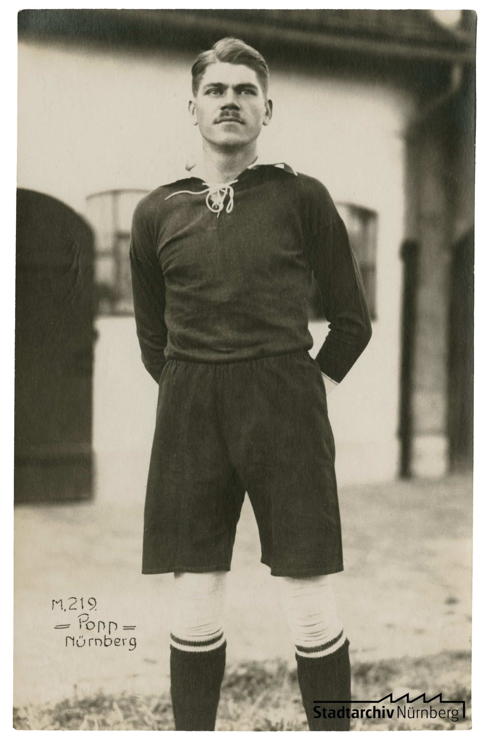 18 Jahre lang trug Luitpold Popp das Nürnberger Trikot und glänzte dabei sowohl als Torjäger als auch als Verteidiger. Foto, um 1925. (StadtAN A 35 Nr. 157-21)