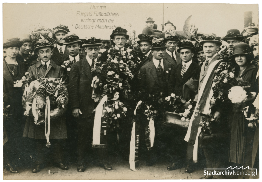 Spätestens nach dem Ersten Weltkrieg entwickelte sich Fußball zum Massenphänomen und zum beliebtesten (Zuschauer-)Sport der Weimarer Republik. Kriegsheimkehrer aller sozialen Gruppen hatten zur Verbreitung des Fußballs beigetragen und mit der Einführung des Achtstundentags konnten sich weite Teile der Bevölkerung vermehrt Freizeitaktivitäten zuwenden, was den Fußballsport über seine ursprünglich bürgerlich-akademische Klientel hinaus erfolgreich werden ließ. Die Mitgliederzahl des Deutschen Fußballbunds war bis 1920 im Vergleich zu 1913 um mehr als das Vierfache angestiegen und auch die Zahl der Vereinsmitglieder des 1. FC Nürnberg hatte sich von 800 im Jahr 1914 auf 3.336 im Jahr 1920 vervierfacht. Eben von einer Gastspielreise aus Schweden zurückgekehrt, ereilte den „Club“ am 22. Juli 1919 eine folgenschwere Niederlage: Im „Zabo“ verloren chancenlose Nürnberger 0:3 gegen den ungarischen Serienmeister MTK Budapest, eine der damals besten Mannschaften Europas. Die Budapester Fußballvirtuosen um Mittelstürmer Alfred Schaffer (1893–1945), Linksaußen Peter Szabo (1899–1963) oder Rekordtorschütze Imre Schlosser (1889–1959) zeigten den aufstrebenden Franken schonungslos ihre Grenzen auf. Nachhaltig beeindruckt von dieser Lehrstunde landeten die Nürnberger kurz darauf einen echten Coup: Nach Abschluss der MTK-Tournee verpflichtete der „Club“ die Fußballstars Szabo und Schaffer. Letzterer verpasste seiner neuen Mannschaft als Spielertrainer den letzten taktischen und technischen Schliff. Entsprechend ging der 1. FCN als Favorit in die Spielzeit 1919/20 der Kreisliga Nordbayern, wo er nun erstmals regelmäßig in weinroten Trikots und schwarzen Hosen auflief. Nach einem 5:0-Sieg gegen den MTV Fürth zur Saisoneröffnung am 20. September 1919 folgte Kantersieg auf Kantersieg. Mit 18 Siegen aus 18 Spielen und einem Torverhältnis von 115:6 ging es in die Endrunde um die süddeutsche Meisterschaft. Trotz des Wechsels von Topstürmer Alfred Schaffer nach Basel zog der 1. FCN ins Finale ein, wo der FC Pfalz Ludwigshafen mit 3:0 besiegt wurde – der „Club“ war Süddeutscher Fußballmeister.